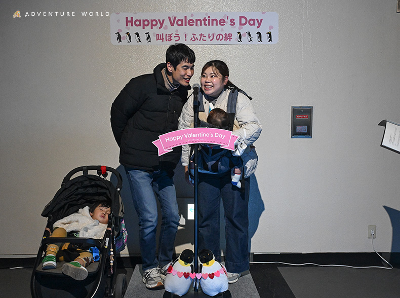 そんなペンギンたちの前で、アドベンチャーワールドでは、バレンタイン特別企画「ハッピーハッピーペンギン」ペアキャンペーンを開催しています。