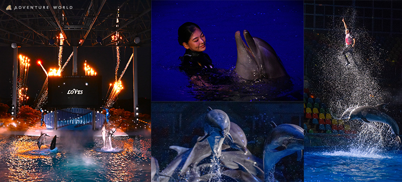 夜の静寂に包まれた「ビッグオーシャン」で繰り広げられるのは、心結ばれたイルカ・クジラとトレーナーが紡ぐ、まっすぐな愛の物語。言葉を持たずとも信じ合うその姿は、見る者の心をほどき、生命の尊さを思い出させてくれます。光と音楽、そして水しぶきが、地球上のすべての生命への「愛おしさ」を呼び起こす、至福の癒やしをお届けします。