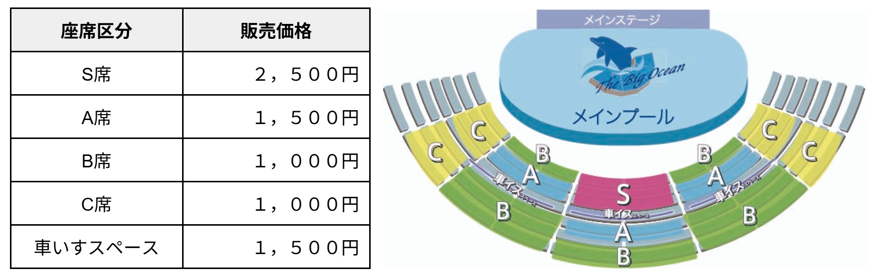 ※車いすスペースは付き添い(介助者)は2名まで可能です。(1,500円/名)