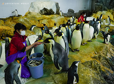 アドベンチャーワールドでは、1978年の開園時にフンボルトペンギンとキタイワトビペンギンの飼育を開始し、1990年から自然界で暮らすペンギンコロニー(繁殖群)を再現すべく、「ペンギンプロジェクト」として本格的に飼育・繁殖研究に力を注いできました。アデリーペンギン、ヒゲペンギン、ジェンツーペンギン、キングペンギンと繁殖実績を積み、1997年に世界最大のペンギン、エンペラーペンギンの繁殖研究を開始しました。
