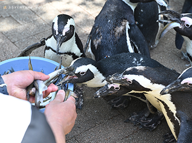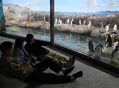 寒帯地に生息する約250羽のペンギンたちが暮らす海獣館2階でアニマルエデュテイナーのレクチャーを聞きながら、たくさんのペンギンがごはんを食べる姿をご覧いただけます。