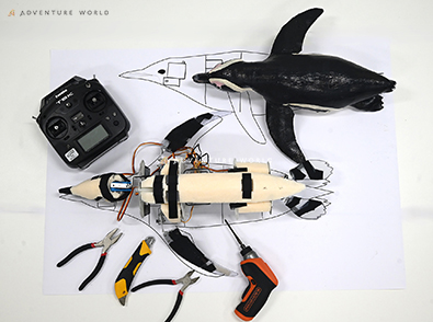 リモートコントロールによってペンギンさながらに水面をスイスイと泳ぐ、その生命力溢れる動きにご注目ください。全6種類のペンギンロボットの手づくりならではの愛らしい表情と、驚きの遊泳パフォーマンス を通じて、ペンギンの生態を楽しく学べるエンターテインメント空間をお届けします。